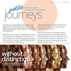Come to the Waters, is a history of the Sisters of St. Joseph of Northwestern Pennsylvania written by Leonie Shanley, SSJ, and Mary Francis Becker, SSJ, on the occasion of the 150th anniversary of the Sisters of St. Joseph in the Diocese of Erie in 2010. Click here to explore the book.